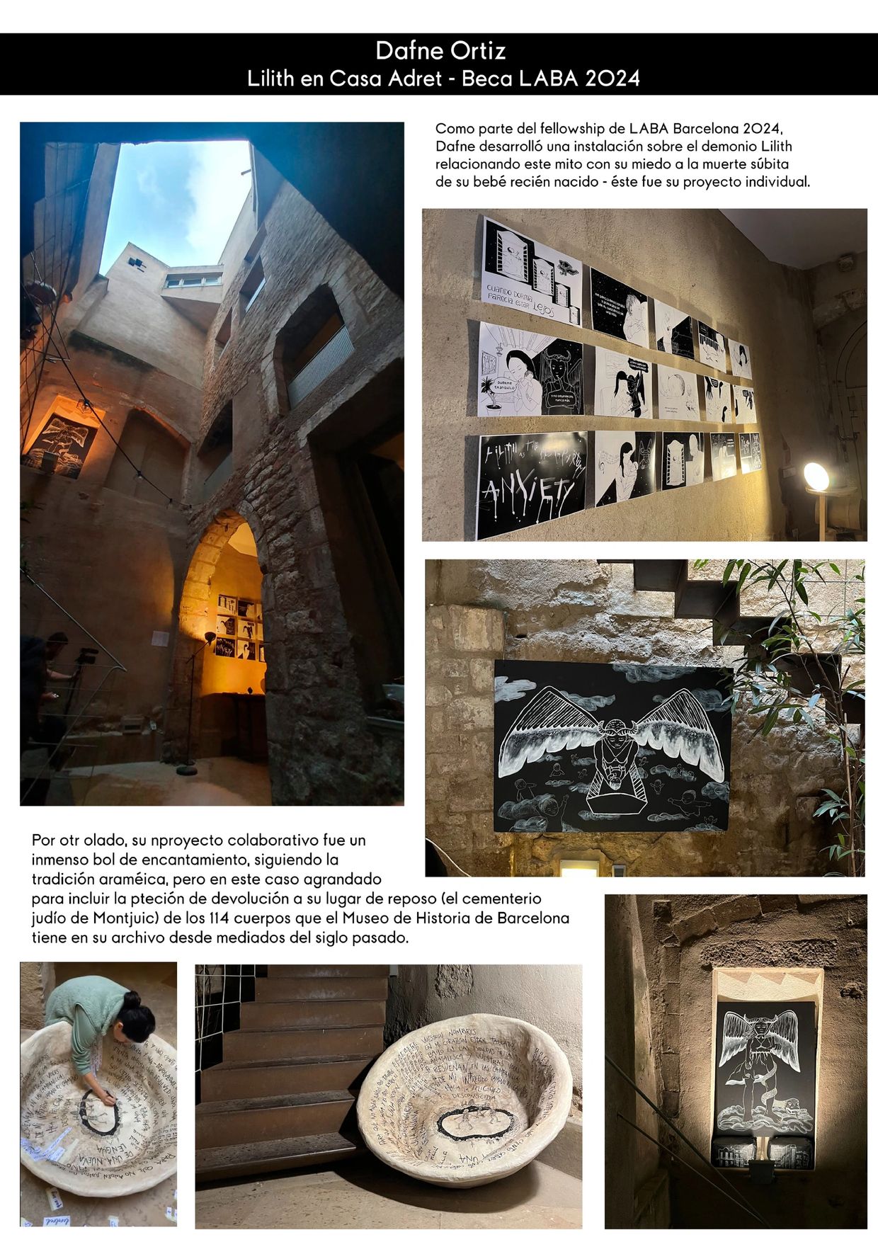 Por otro lado, "Lilith como ansiedad posparto", retrata el miedo a perder al bebé tras el nacimiento con imágenes de la vida del recién nacido, seguidas de la aparición del miedo personificado en la figura de Lilith, a quien se le atribuían las muertes prematuras de recién nacidos. Esta pieza formará parte del cómic sobre la ansiedad posparto, en el que Dafne está trabajando.